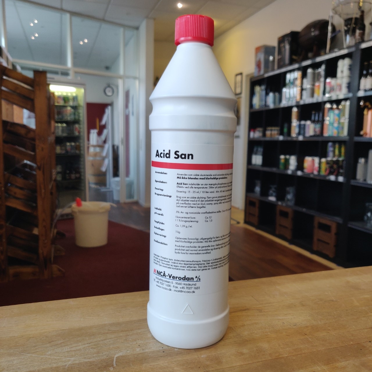Acid San er Maltbazarens egenudviklede version af den populære Star San fra Five Star Chemicals og er et højtskummende og anionisk, surt rengøringsmiddel, som bruges til desinfektion af diverse udstyr.