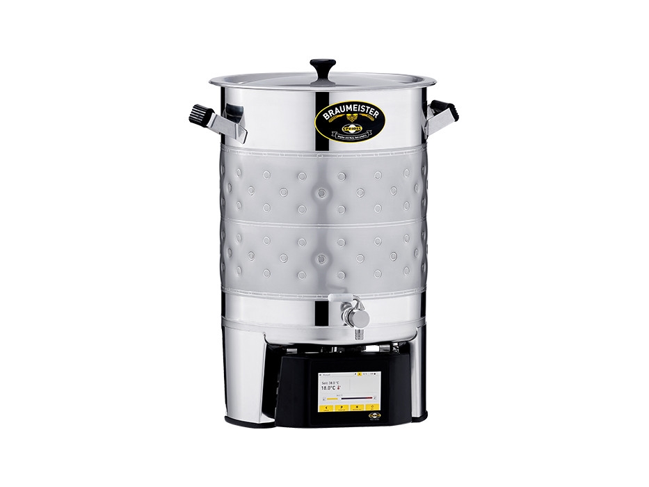 Braumeister PLUS med ny brygningskontrolenhed og med den kendte påsvejste dobbeltkappe til køling.