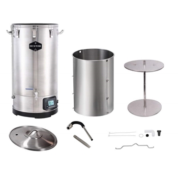 ***FRI FRAGT til GLS Pakkeshop på alle Brew Monks*** The Brew Monk, den hellige ØL treenighed, Mæskning, Filtrering og kogning alt i en og samme enhed...The Brew Monk (Bryg Munken) er en automatiseret alt i 1 løsning, i en og samme gryde, udført i AISI 304 stål, som gør det muligt at brygge optil! 30 ltr øl Du styrer og kontrollerer brygningen gennem den programmerbare Controller, med digital display. Som i andre hjemme bryganlæg, klares filtringen med de indbyggede og justerbare filterplader, alle udført i AISI 304 stål, hvilket gør at du ikke har brug for en separat Lautertun. Fås i 2 størrelser, en 30 og en 45 liters version, og vi har lavet 2 udstyrsvarianter så du kommer godt fra start uanset om du er erfaren (og har andet udstyr) eller har en spirende Brygmester i maven... |