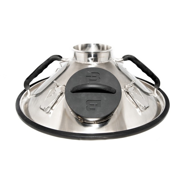 Den har en silikonekant forsegling, 4 klemmer, der holder den på plads på dit Brewtools system, et 110 mm inspektionshul, som du kan tilføje dine humle, når du koger, 2 silikonebetrukkede håndtag og en 4 tommer tilbehørsholder ovenpå.