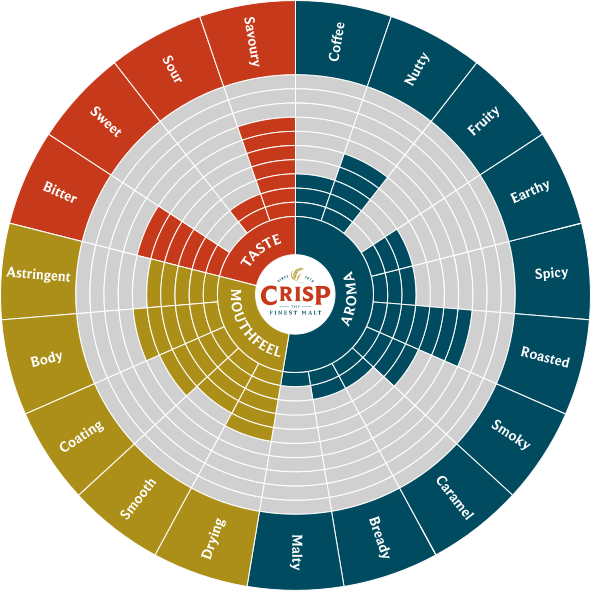 Også kendt som Patent malt. Den mørkeste ristede malt med masser af ristet karakter, brændthed med lag af lakrids, røg og nødder.