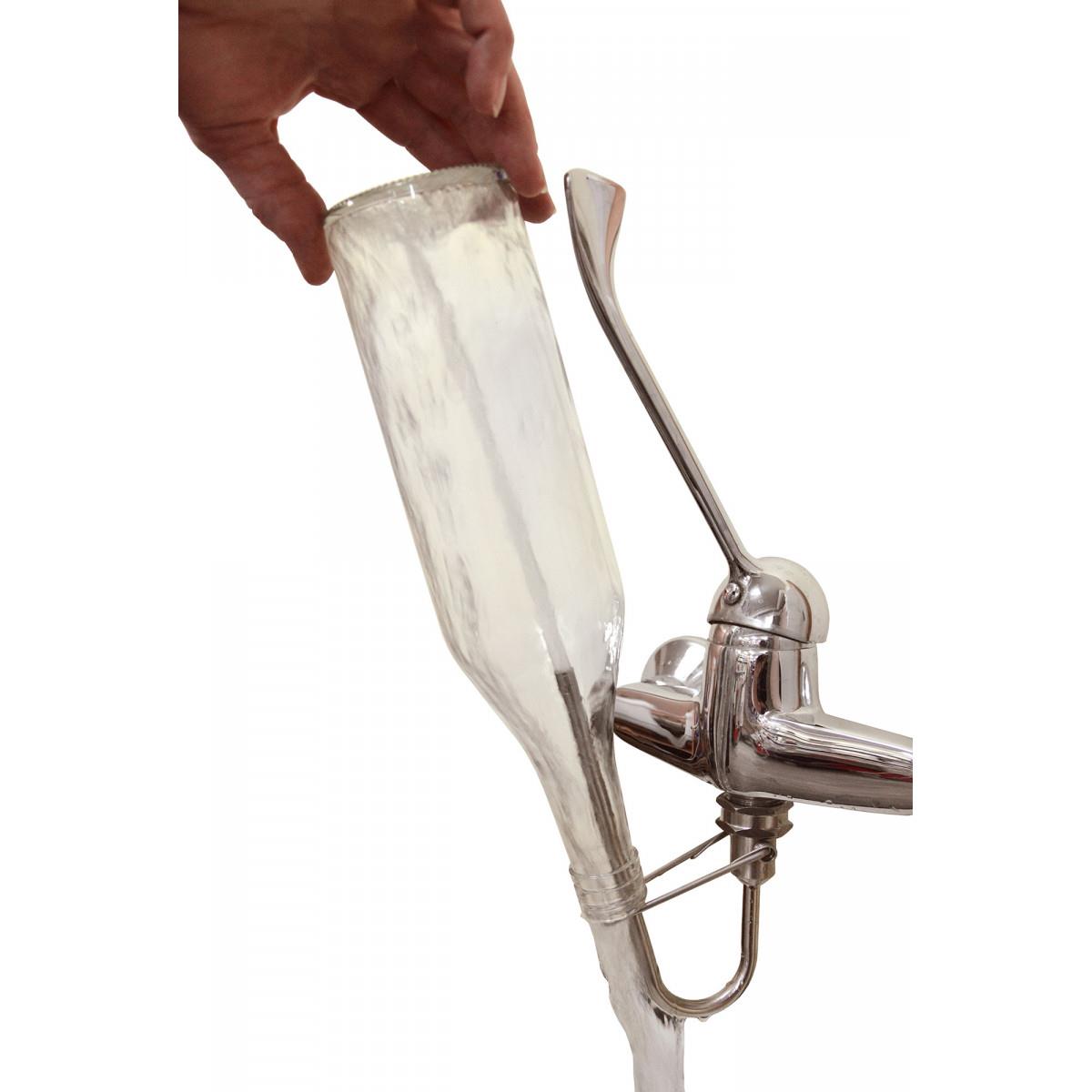 Flaskespuler til montering på vandhane med automatisk lukke ventil.