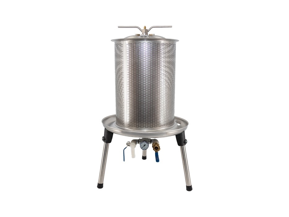 Fungerer vha. en plasticmembran, der fyldes med vandhane og derved presser frugten imod metalkurven. Hurtig og effektiv at bruge med blot 2 bars vandtryk. Pressen har manometer og sikkerhedsventil.