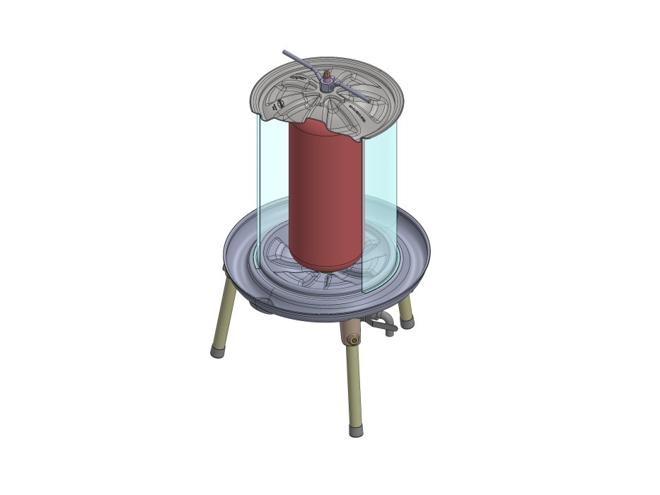 En energibesparende, genialt enkel drivmekanisme: Tilslut en haveslange til den almindelige vandforsyning og luk for hanen. Postevandet udvider gummimembranen inde i pressen og presser den malede frugt mod maskekurven. Trykket og pressetiden kan reguleres ved at skrue mere eller mindre på hanen.