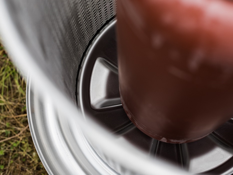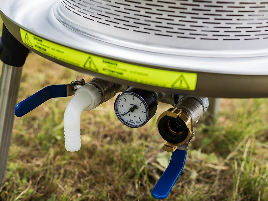 Du har aldrig presset så god juice så hurtigt og nemt før: Du skal bare kværne frugt, vindruer eller bær og fylde hydraulikpressen op, tænde for hanen og se, hvordan trykket fra det indkommende postevand komprimerer det kværnede materiale fra indersiden til udvendig mod netkurven.