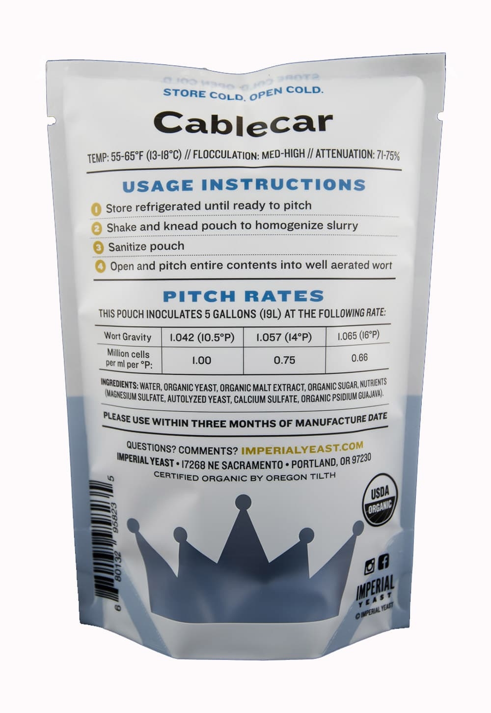Imperial Yeast er USDA Certified Organic af OregonTilth, det er altså en US standard, og ikke en Dansk eller EU certificering, hvorfor vi ikke i DK og EU må kalde den økologisk.