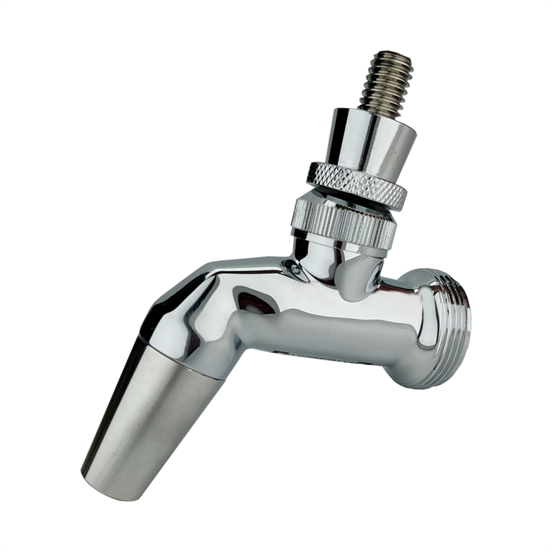 Intertap fadølshane I rustfrit stål, specielt designet med glat udløb for at sikrer en laminær strømning og skumfri dispensering af øl.