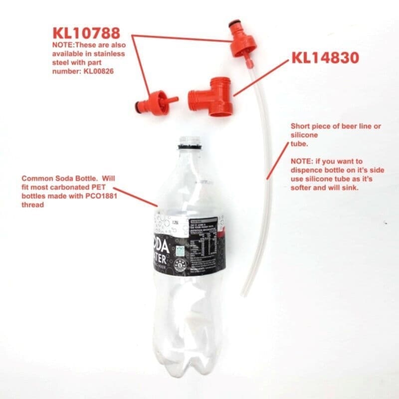 På karbonerings-T-stykket kan man montere enten et plastik eller metal rengørings- og karboneringslåg. Herefter kan både en Co2 og væske ball lock monteres på samme tid, så du kan tage en alm. sodavandsflaske og lave den om til en growler. Brug denne til enten at servere mindre mængder øl eller brug det som rengøringsbeholder til slangerne på fadølsanlægget.
