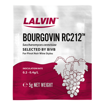The Lalvin Bourgovin RC212 yeast has been selected by the BIVB (Bureau Interprofessionnel des Vins de Bourgogne), and was developed for red wines with color and structure. Due to the limited polyphenol adsorption on its cell wall, this yeast promotes the stabilization of the color and tannins during fermentation. This outstanding property makes Lalvin Bourgovin RC212 a wise choice to enhance the polyphenolic content of Gamay, Zinfandel and Grenache. Lalvin Bourgovin RC212 consistently produces Pinot Noirs with good structure, ripe berry, bright fruit and spicy characteristics