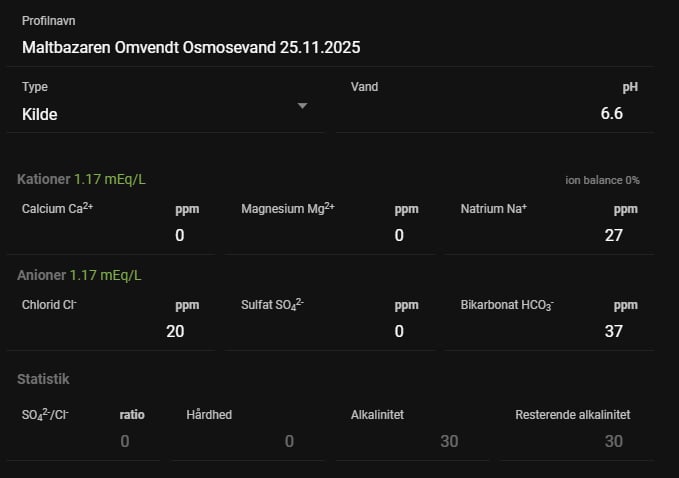 Vandet har ca. 10 ppm ioner tilbage, hvilket gør det brugbart til selv de lyseste, letteste ølstile.