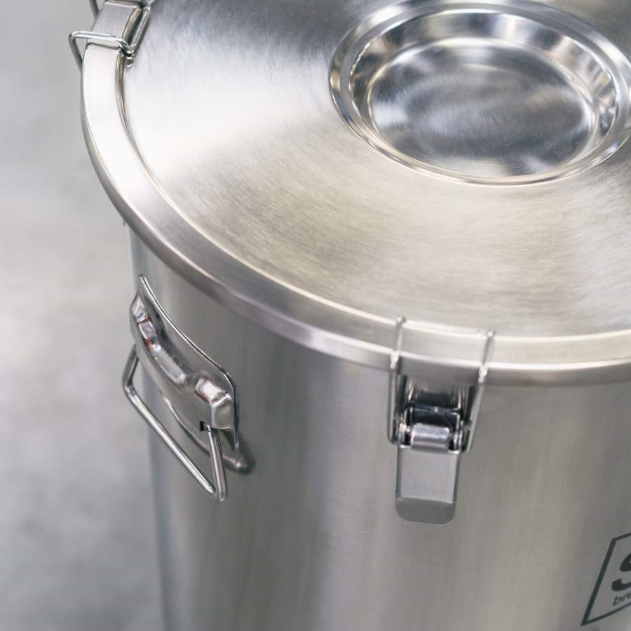 - Rustfrit stål låg med silikoneforsegling og 15 mm boret hul til Gærlås